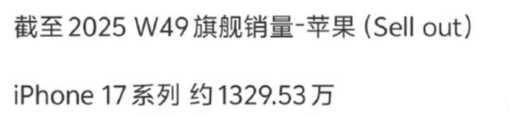当2025年W49的销量数据新鲜出炉,一组数字在手机圈炸开了锅——iPhone17系列国内销量已冲到1329.53万部。这串数字背后,不只是苹果的胜利勋章,更是中国智能手机市场格局被搅动的清晰信号。